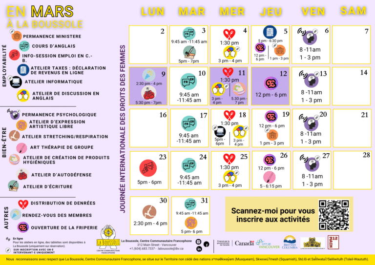 Le jeudi 5 mars, en partenariat avec Family Services of Greater Vancouver, nous vous invitons à développer les compétences nécessaires pour produire votre déclaration de revenus en ligne.